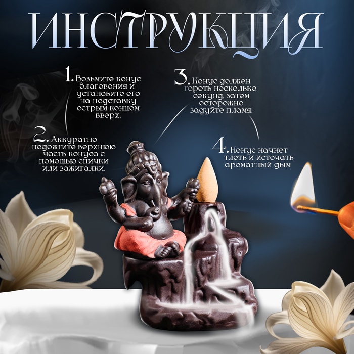 Подставка для благовоний «Ганеша», стелющийся дым, 12×8 см