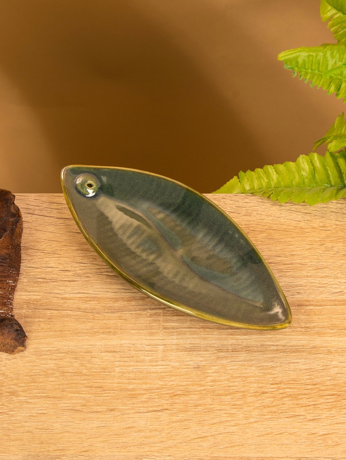Подставка под благовония «Длинный лист», 17×7×1.5 см, керамика, зелёная