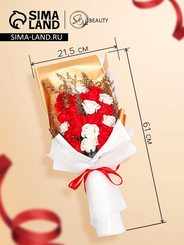 Состоит из 20 роскошных цветов, выполненных из мыльного материала, который внешне не отличим от живых бутонов. Прекрасный выбор как для украшения интерьера, так и для оригинального презента, который сохранит свою красоту и символику на долгие годы.