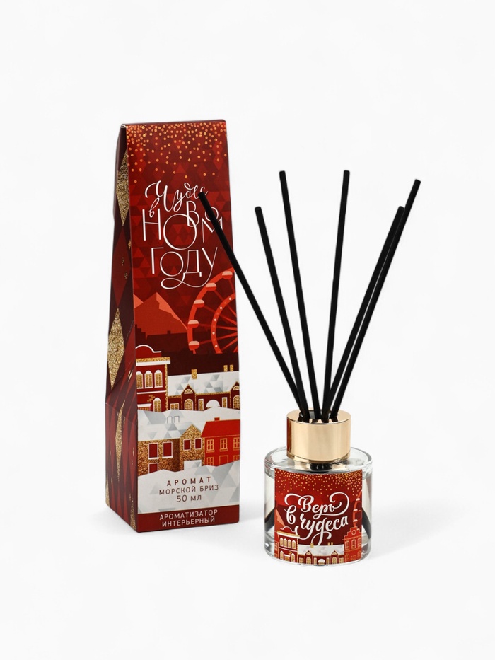 Диффузор ароматический палочки новогодний «Верь в чудеса» аромат морского бриза, 50 мл - для дома, кабинета и офиса. Ароматные палочки и диффузоры являются современным модным элементом интерьера. Ароматический диффузор создаёт комфорт и притягательную ауру в помещении.