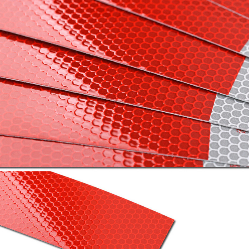 Светоотражающие красно-белые водостойкие наклейки используются для улучшения пассивной безопасности автомобиля путем повышения его заметности. Клеятся на предварительно обезжиренную и высушенную поверхность как снаружи, так и внутри автомобиля. Как пример, на торцы дверей, чтобы их лучше было видно при открывании, на пороги автомобиля, внутреннюю поверхность крышки багажника. Имеют очень хорошую отражающую способность.