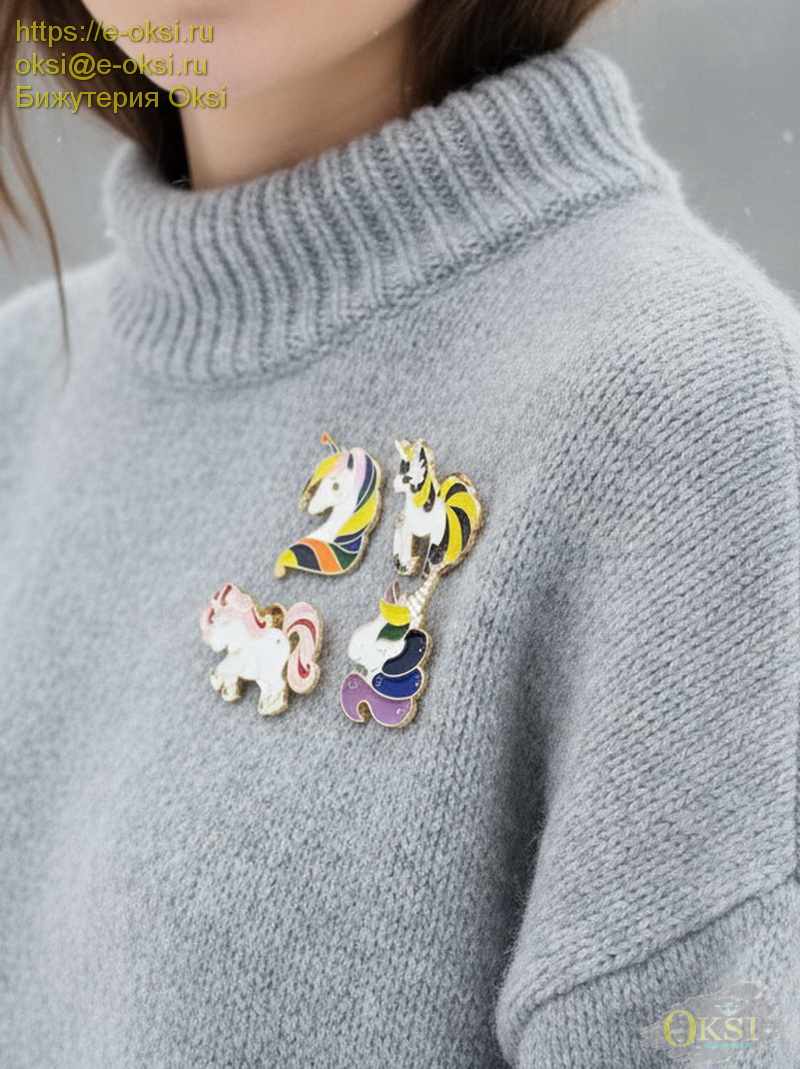 Очаровательные '' Пони ''. Символ 2026 года.Цена за комплект брошей 4 штуки. Качественное гальваническое покрытие золотого цвета, ювелирная эмаль. Отличный и недорогой подарок к празднику.