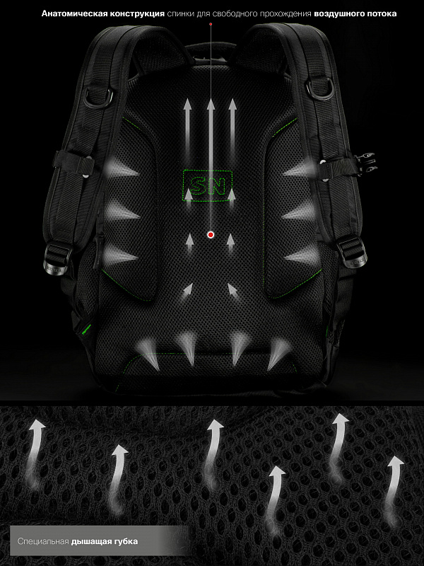 Плечевые вентилируемые лямки с укрепляющими ремнями в форме «Маечки».