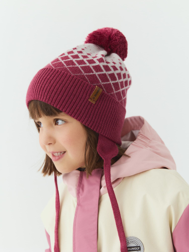 Шапка из смесовой шерсти "Ромбы фуксия"