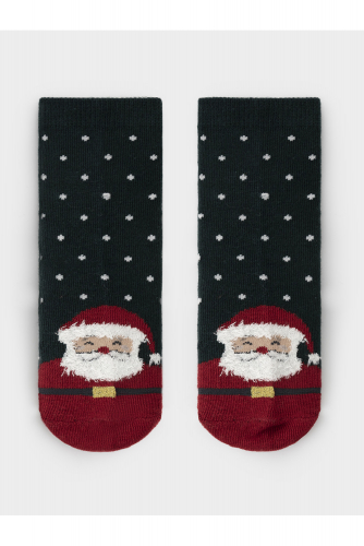 Тёплые пушистые следки для детей с формованной пяткой и эластичной резинкой по краю. На подошве резиновые стопперы. Украшены рисунком. Отлично подойдут для создания праздничных образов или как дополнение к подарку на Новый год и Рождество. Изделие сохраняет форму и стойкий цвет после многочисленных стирок.