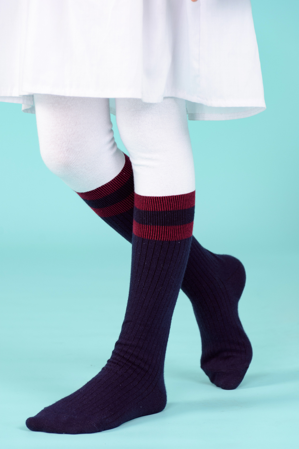Оригинальные колготки для школьников. Однотонный гладкий верх, низ имитирует гольфы контрастного цвета в узкую полоску. Спокойный дизайн и расцветка колготок отлично подойдут для стильного школьного образа. Расцветка: синий,бордо; Состав: 74% х/б, 24% п/а, 2% эластан.