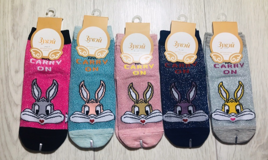 Носки детские 525 блестки заяц на 5-7 лет