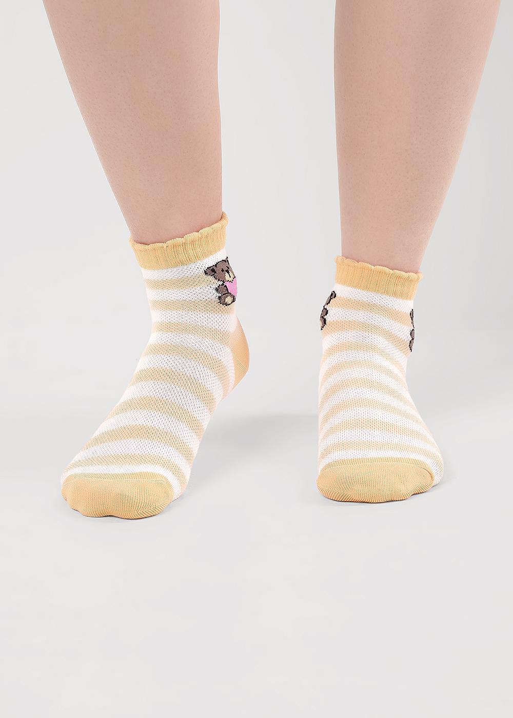 облегченные носки плетение сетка для девочки в полоску с рисунком мишки на паголенке