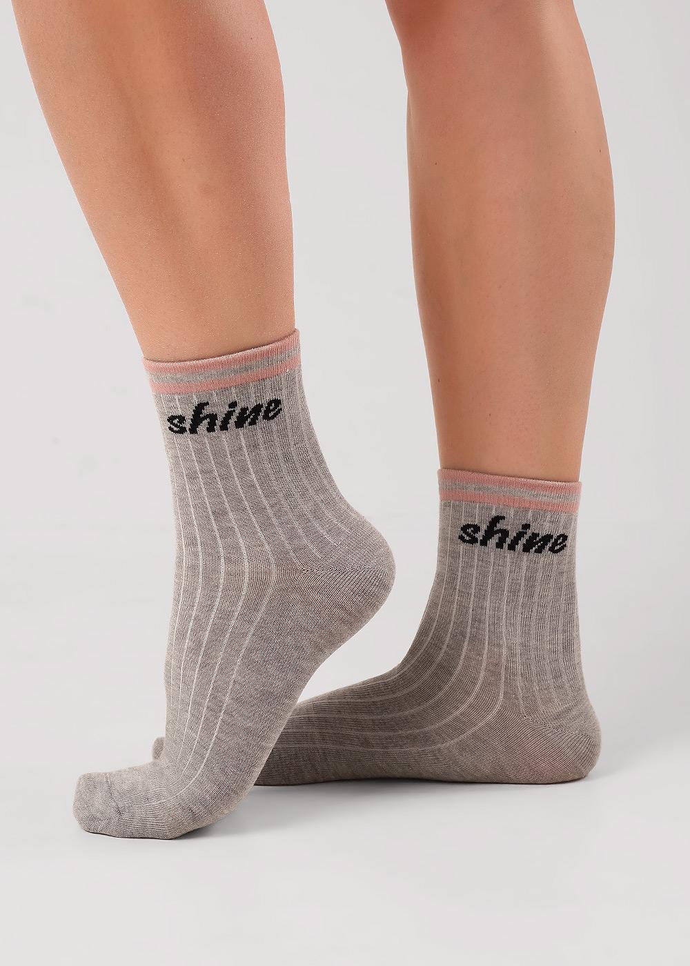Носки для девочки с контрастными полосами на паголенке и надписью.