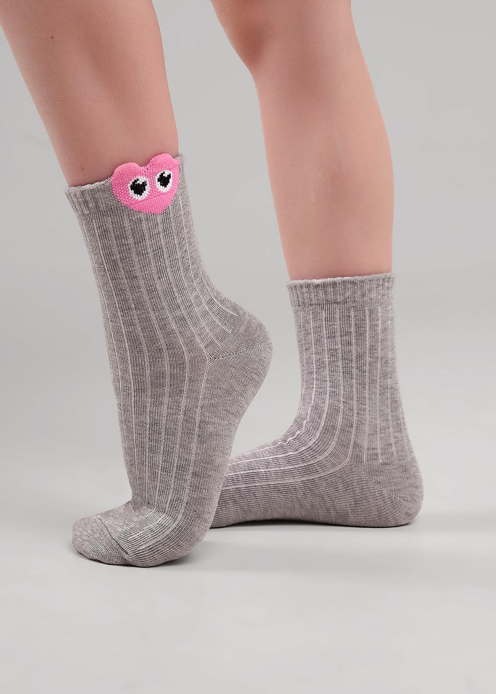 Носки для девочки однотонные с рисунком 3Д сердце с глазками.