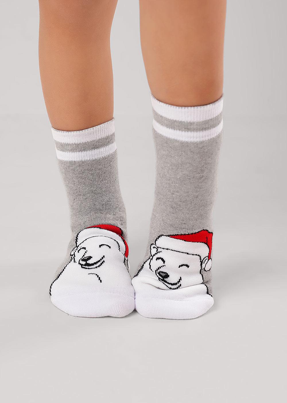 детские теплые плюшевые носки с белым медведем