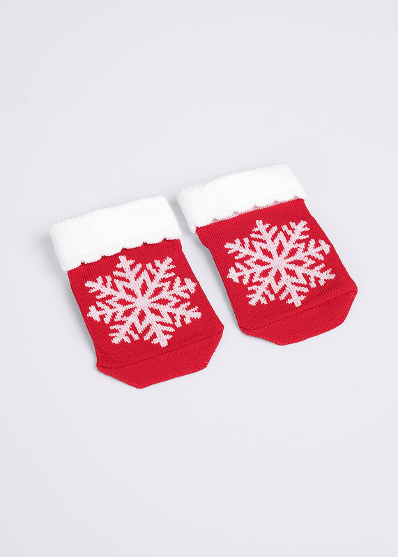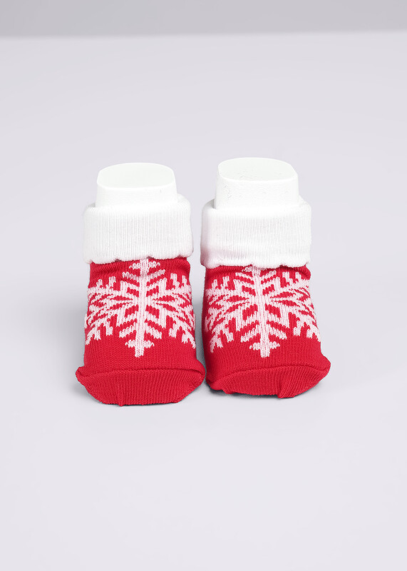 новогодние носочки для новорожденного со снежинкой, одеты на маникен ножки