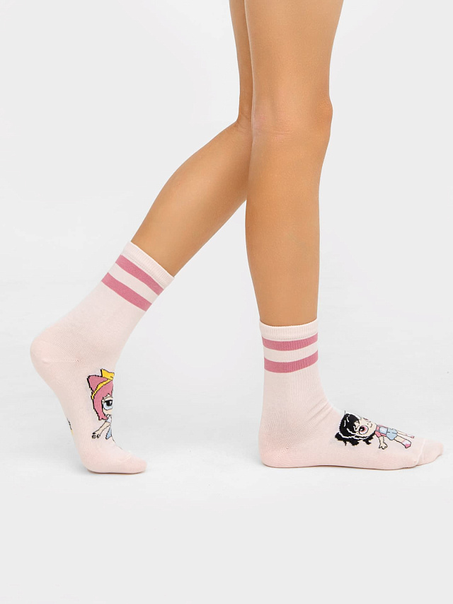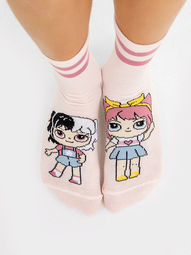 Носки детские в розовом цвете с рисунком в виде кукол
