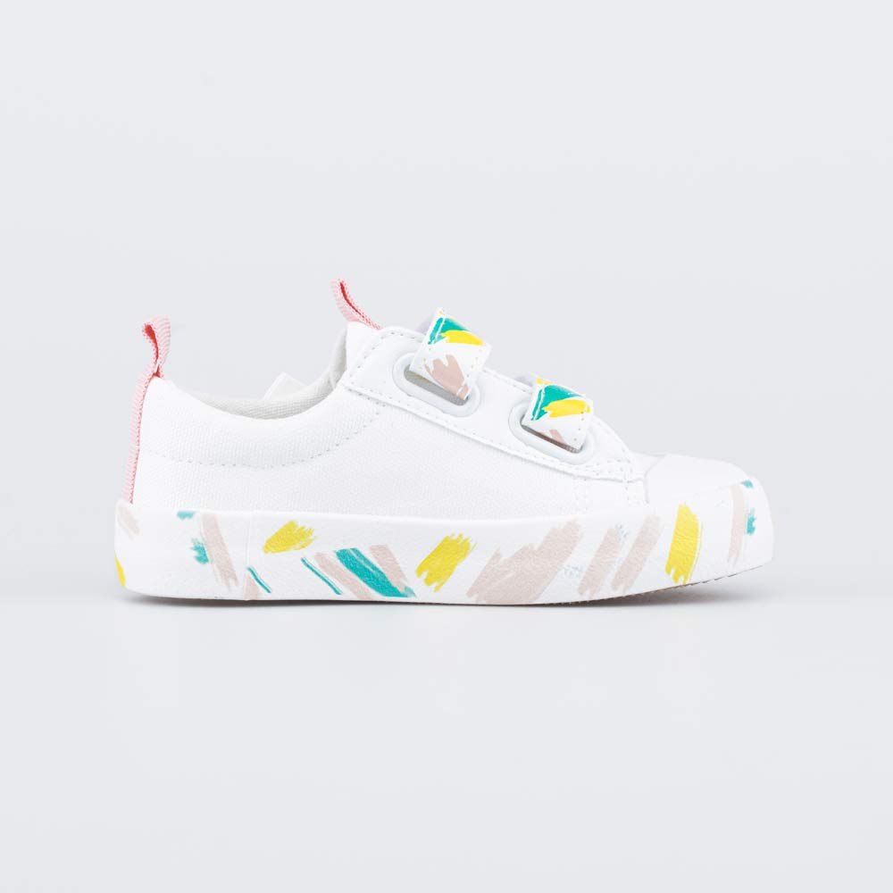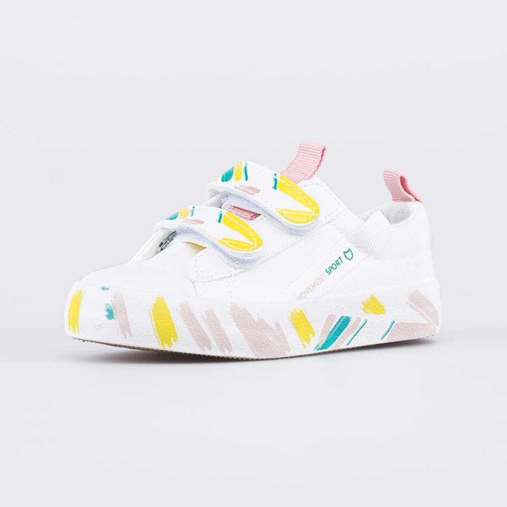 Белые кеды для девочки, украшенные красочным принтом, отлично подходят для прогулок на свежем воздухе.