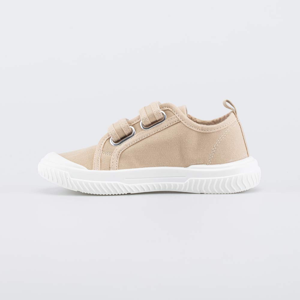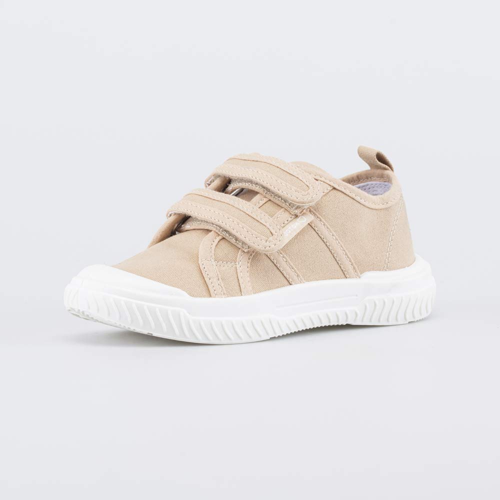 Удобные кеды на липучках, выполненные в спокойном бежевом цвете, подойдут к любому образу девочки ясельного возраста.