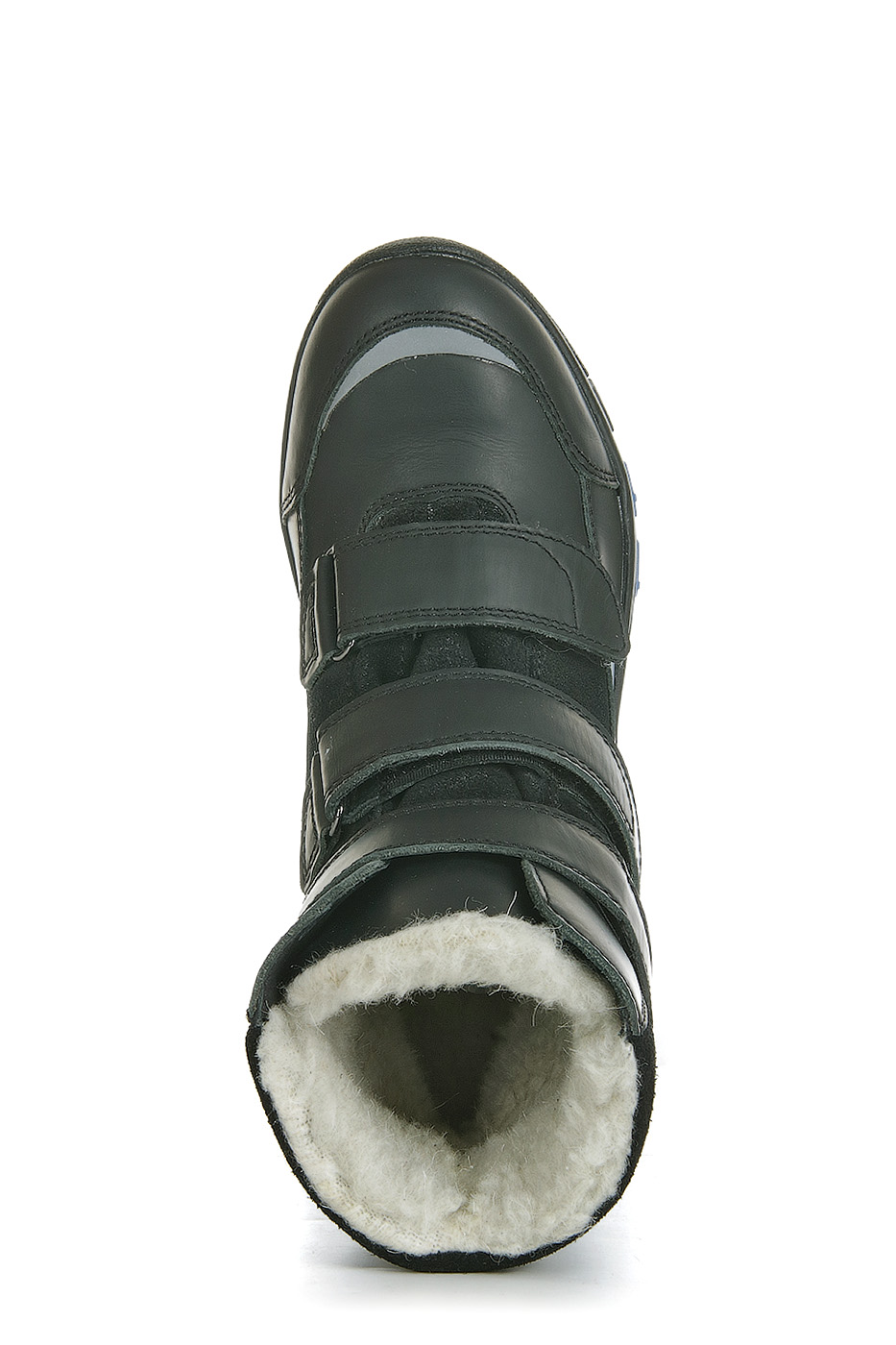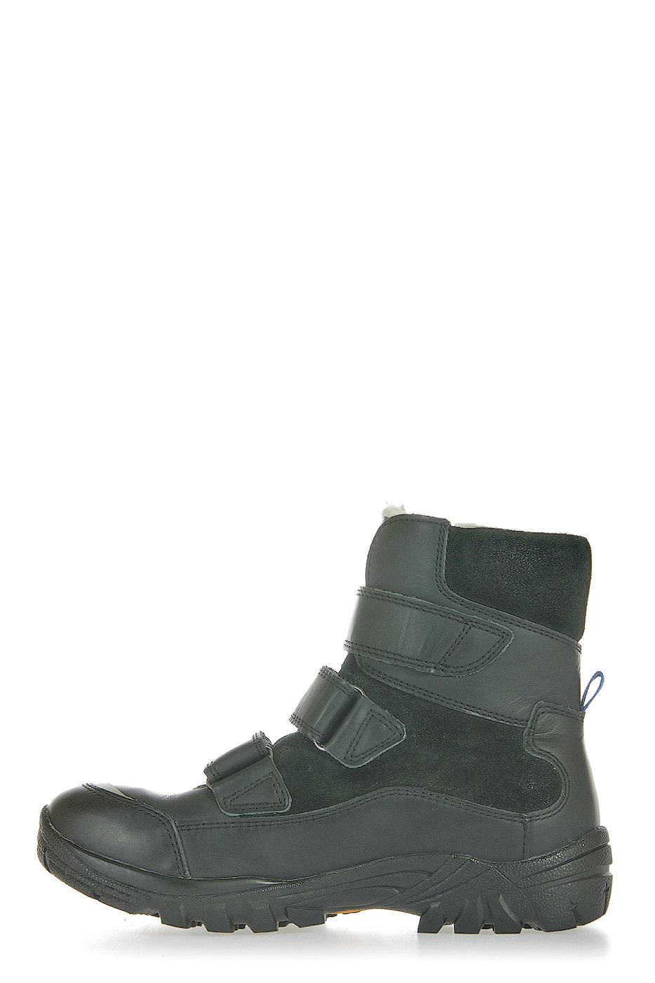 Ботинки выполнены из натуральной кожи. Внутренняя отделка и стелька из шерсти. Детали: застежки на липучках, светоотражающие элементы.