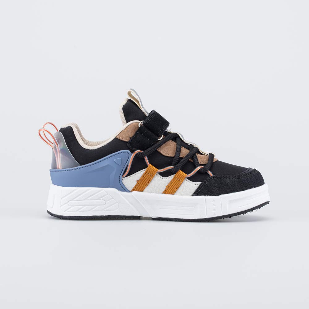 Липучки из искусственной кожи-велюра позволяют быстро обуваться и разуваться, а объемные шнурки становятся эффектной изюминкой модели.