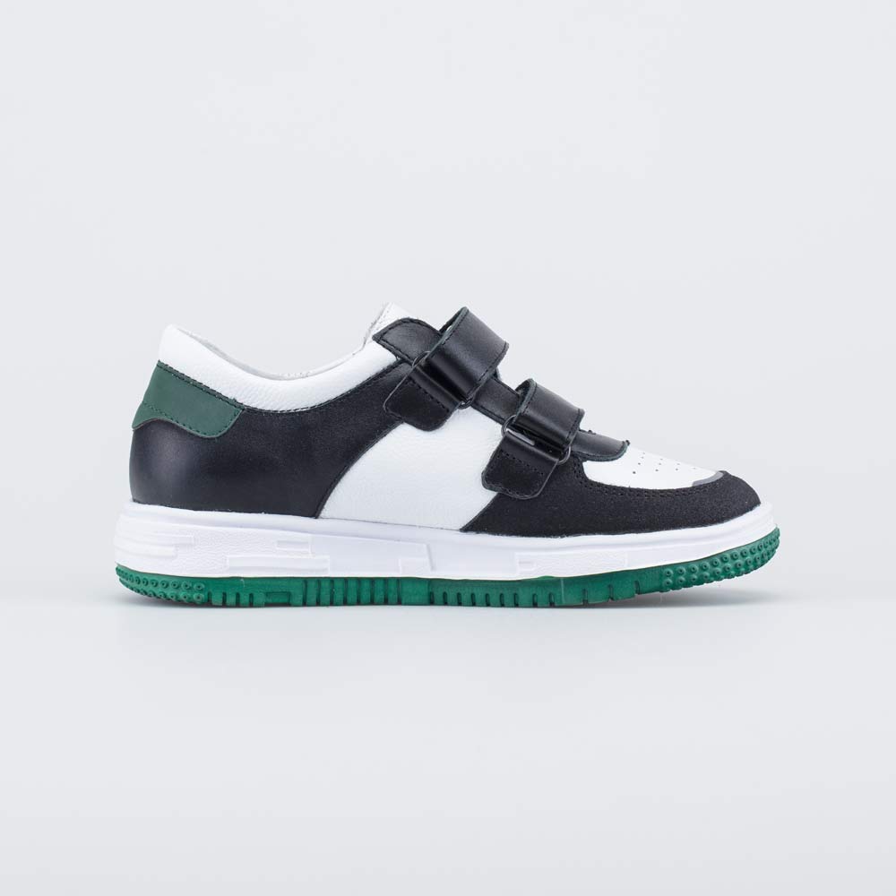 Полуботинки, выполненные в сочетании черного, белого и зеленого цветов, можно сочетать с разными образами.