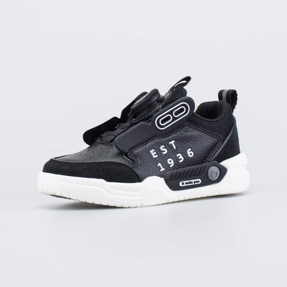 Черные кроссовки с белой подошвой украшены принтом 1936 – год основания фабрики «Егорьевск-обувь».