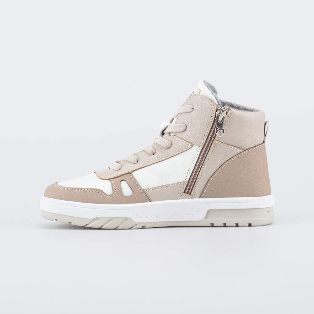 Высокие ботинки для девочки отлично подходят для ранней весны и поздней осени, а благодаря сочетанию разных оттенков бежевого, они становятся интересным дополнением современных образов.