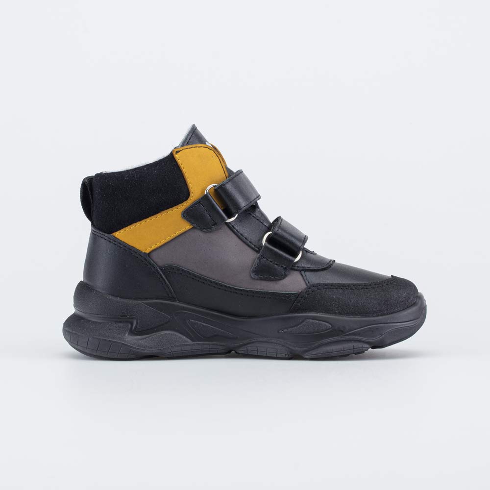 Утепленные демисезонные ботинки для мальчика, выполненные в универсальном черном цвете, обеспечивают уют и комфорт в холодное межсезонье.