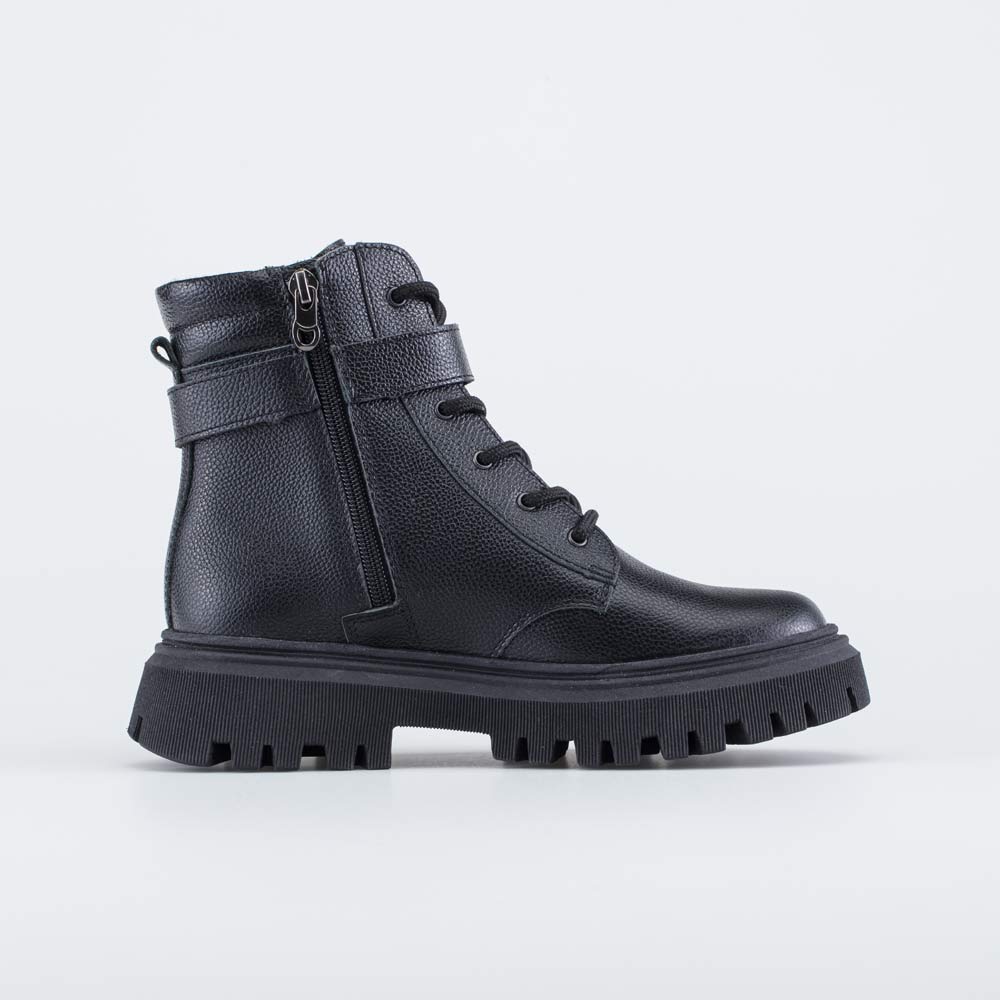 Утепленные кожаные ботинки черного цвета подходят для девочки-подростка.