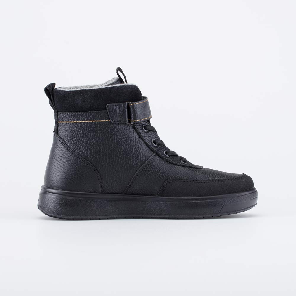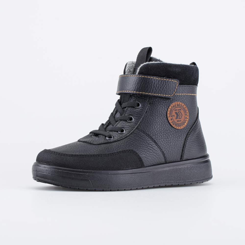 Утепленные кожаные ботинки черного цвета подходят для мальчика-подростка.
