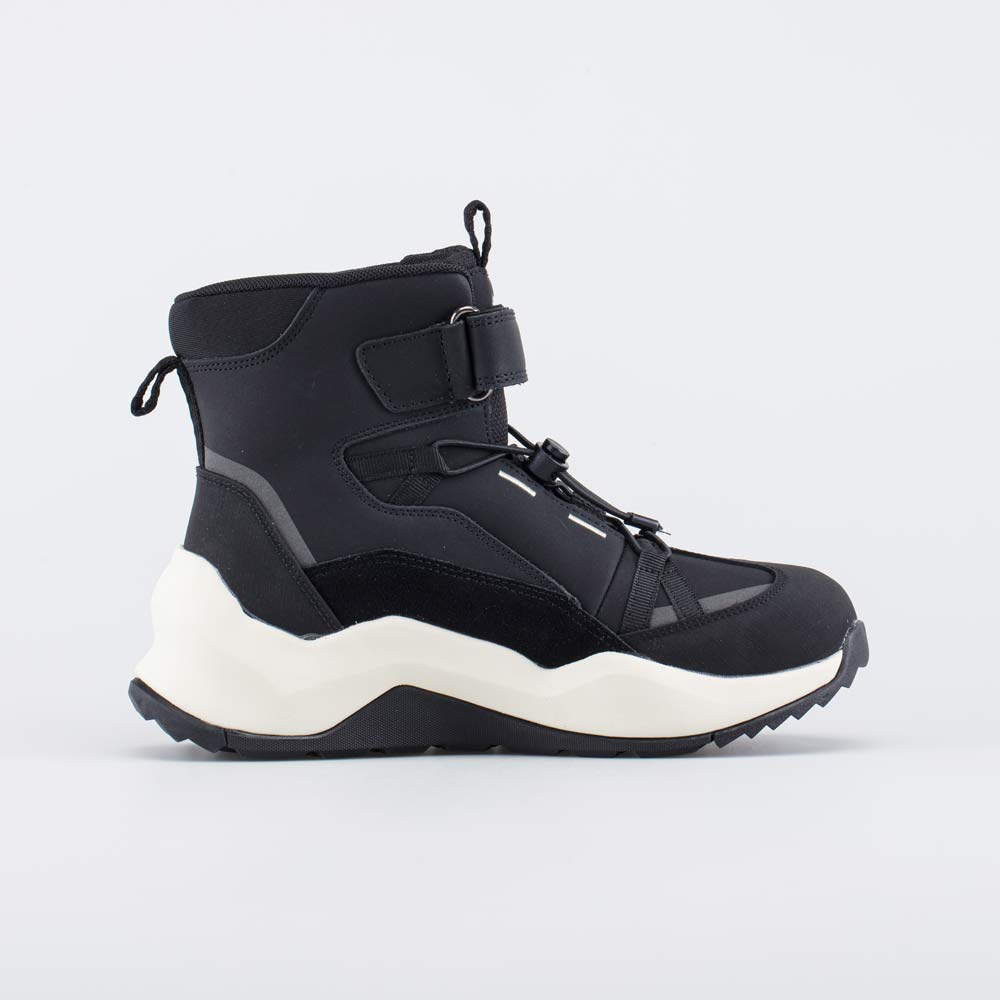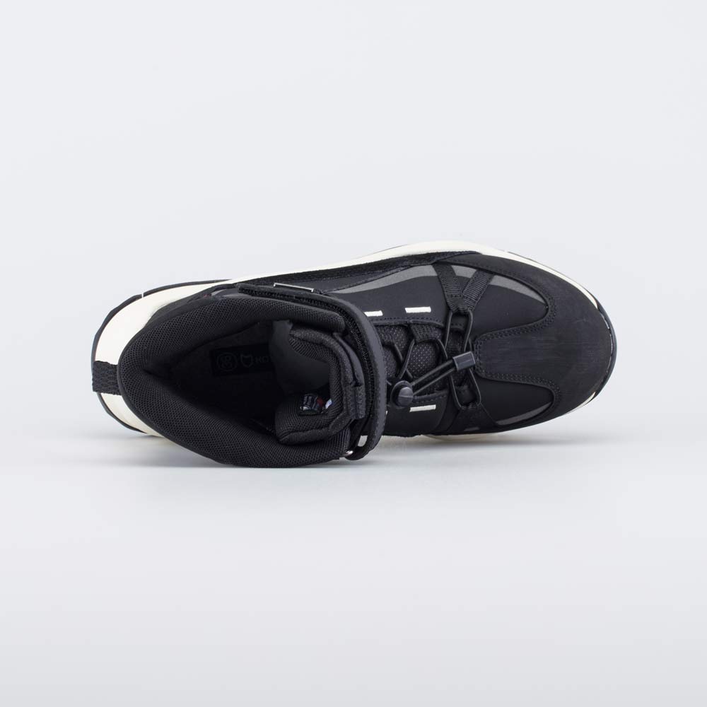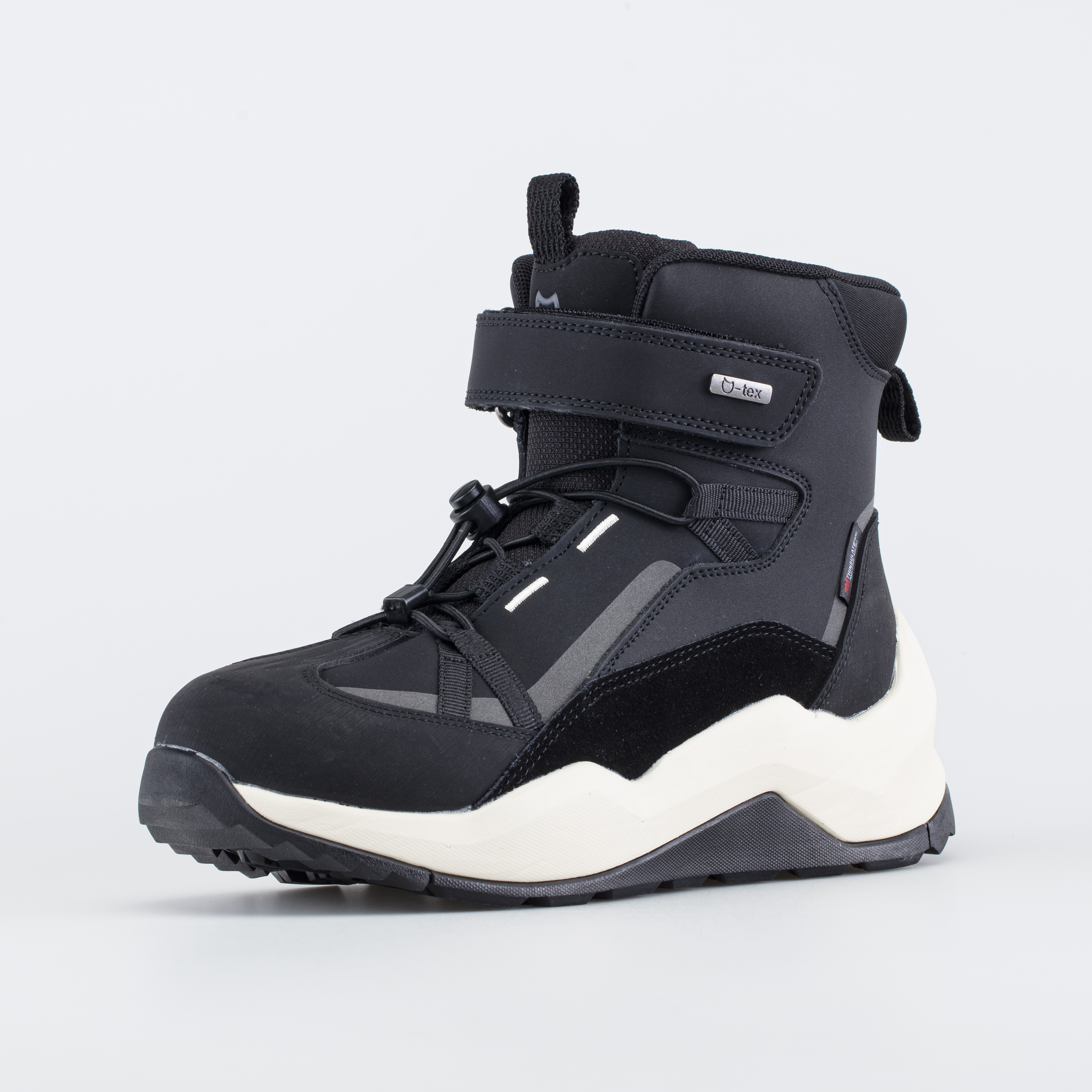 Высокие ботинки с утеплителем Тинсулейт, выполненные в спортивном стиле, хорошо сохраняют тепло в холодную осеннюю и весеннюю погоду. Верх этих черных ботинок выполнен из сочетания натуральной и искусственной кожи, язычок – из текстиля сетчатой структуры. Внутри суперсовременный утеплитель Тинсулейт плотностью 200 г/м2. Он надежно сохраняет тепло, при этом, не добавляя ботинкам веса. Подкладка из гипоаллергенного полиэстера обеспечивает эффективное потоотведение в подростковой обуви. Стелька из натурального войлока отвечает за дополнительную теплоизоляцию. Ботинки на липучках дополнены шнурками-резинками, которые не придется каждый раз завязывать. Спортивная подошва из ЭВА сохраняет демисезонную обувь легкой, а накладка из термопластичной резины на ходовой поверхности повышает ее устойчивость. Модель имеет анатомически-правильную форму следа, а стелька из войлока приформовывается к стопе, принимая индивидуальную анатомическую форму.