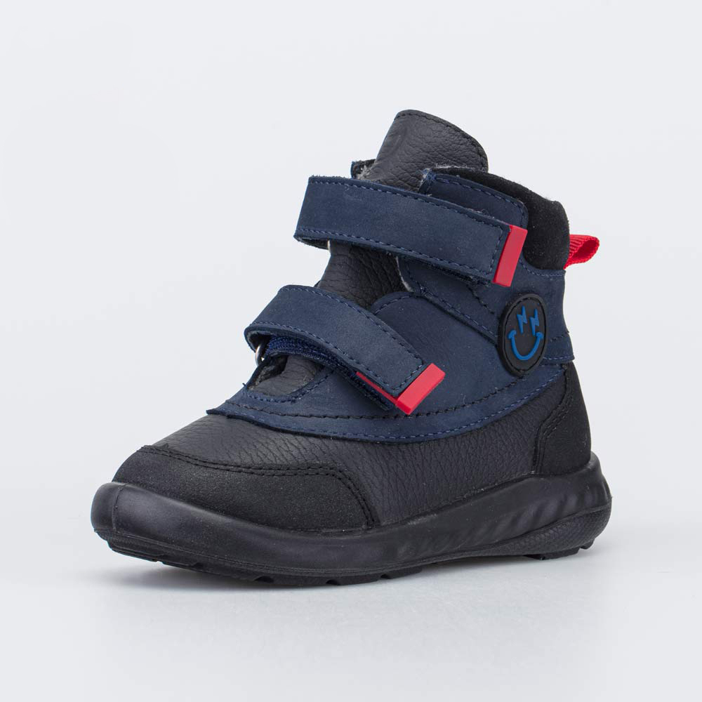 Верх детских ботинок изготовлен из гипоаллергенной и дышащей натуральной кожи разных фактур (гладкая кожа, нубук). Носочная и пяточная части ботинок защищены антивандальными накладками.