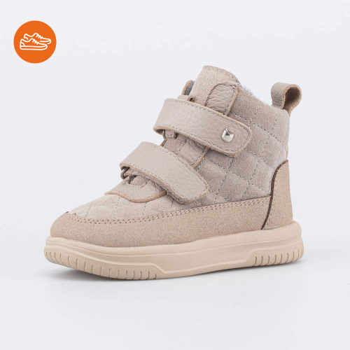 Верх детских ботинок изготовлен из гипоаллергенной и дышащей натуральной кожи разных фактур. Носочная и пяточная части ботинок защищены антивандальными накладками.