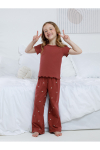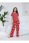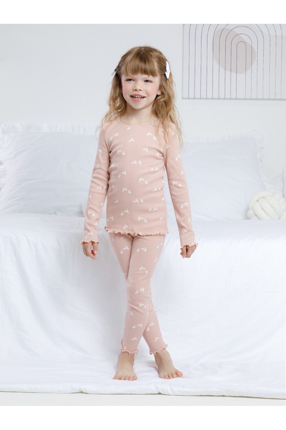 Трикотажная пижама в рубчик из натурального хлопка. Джемпер с длинными втачными рукавами и лосины с эластичной резинкой в поясе. Оригинальная набивка выполнена из стойких текстильных гипоаллергенных красителей. Изделие сохраняет цвет и форму после многократных стирок. Все трикотажные полотна производятся в соответствии с нормами швейцарского сертификата ЭкоТекс.