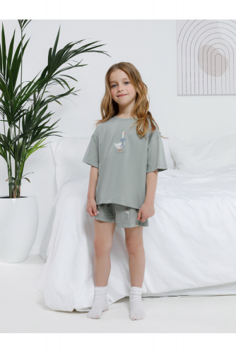 Трикотажная пижама из натурального хлопка для комфортного сна и отдыха. Футболка с короткими спущенными рукавами и шорты с мягкой эластичной резинкой в поясе. Оригинальная набивка выполнена из стойких текстильных гипоаллергенных красителей. Изделие сохраняет цвет и форму после многократных стирок. Все трикотажные полотна производятся в соответствии с нормами швейцарского сертификата ЭкоТекс.