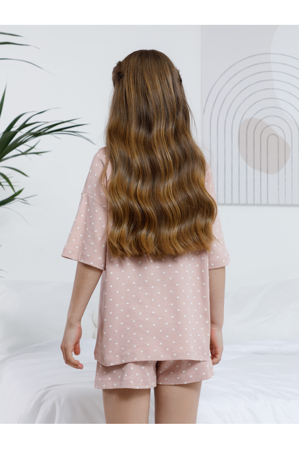 Трикотажная пижама из натурального хлопка для комфортного сна и отдыха. Футболка с короткими спущенными рукавами и шорты с мягкой эластичной резинкой в поясе. Оригинальная набивка и принт выполнены из стойких текстильных гипоаллергенных красителей. Изделие сохраняет цвет и форму после многократных стирок. Все трикотажные полотна производятся в соответствии с нормами швейцарского сертификата ЭкоТекс.