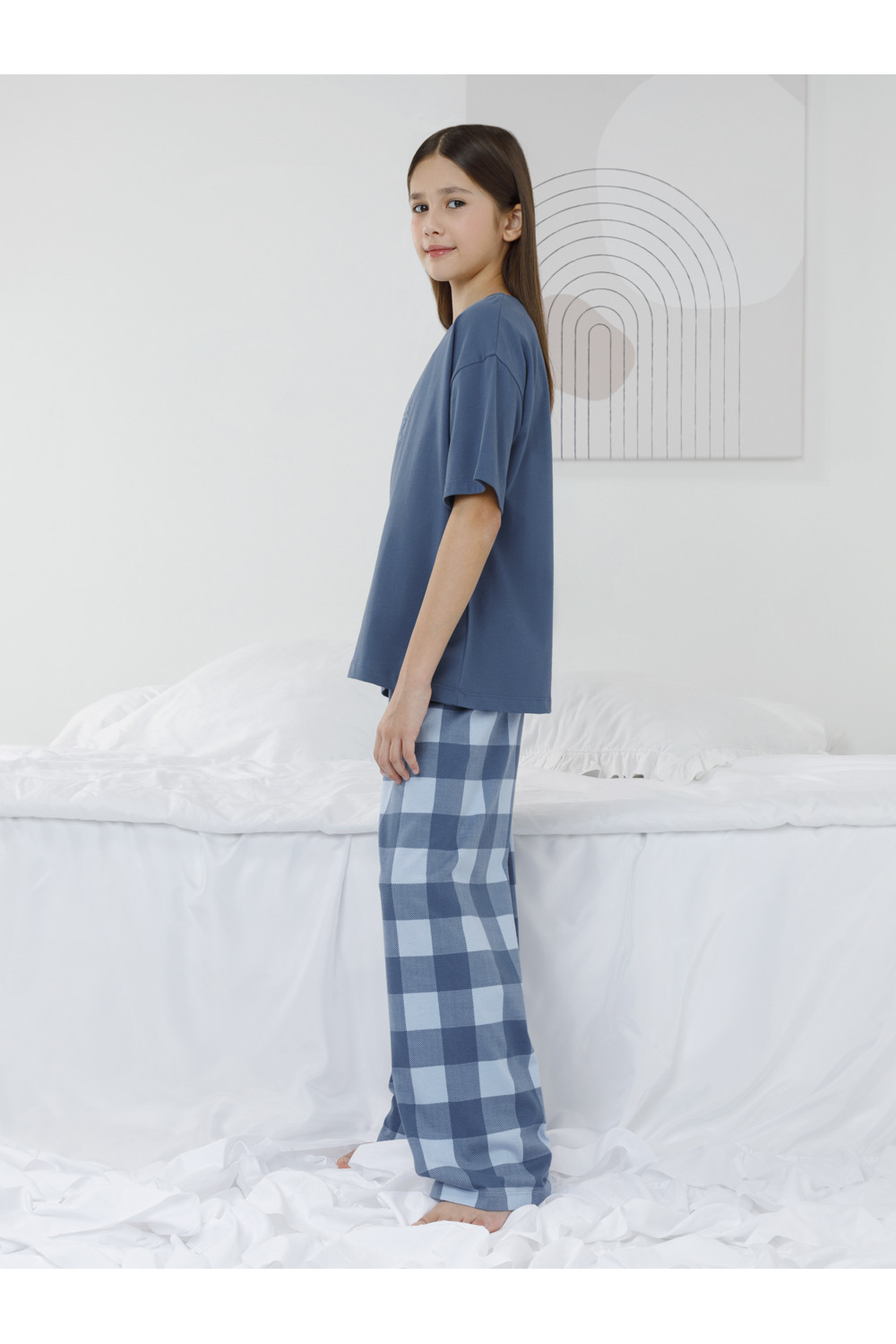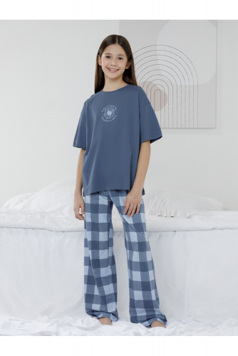 Трикотажная пижама из натурального хлопка для комфортного сна и отдыха. Футболка с короткими спущенными рукавами и прямые брюки с мягкой эластичной резинкой в поясе изготовлены из гладкого трикотажа супрем. Оригинальная набивка и принт выполнены из стойких текстильных гипоаллергенных красителей. Изделие сохраняет цвет и форму после многократных стирок. Все трикотажные полотна производятся в соответствии с нормами швейцарского сертификата ЭкоТекс.
