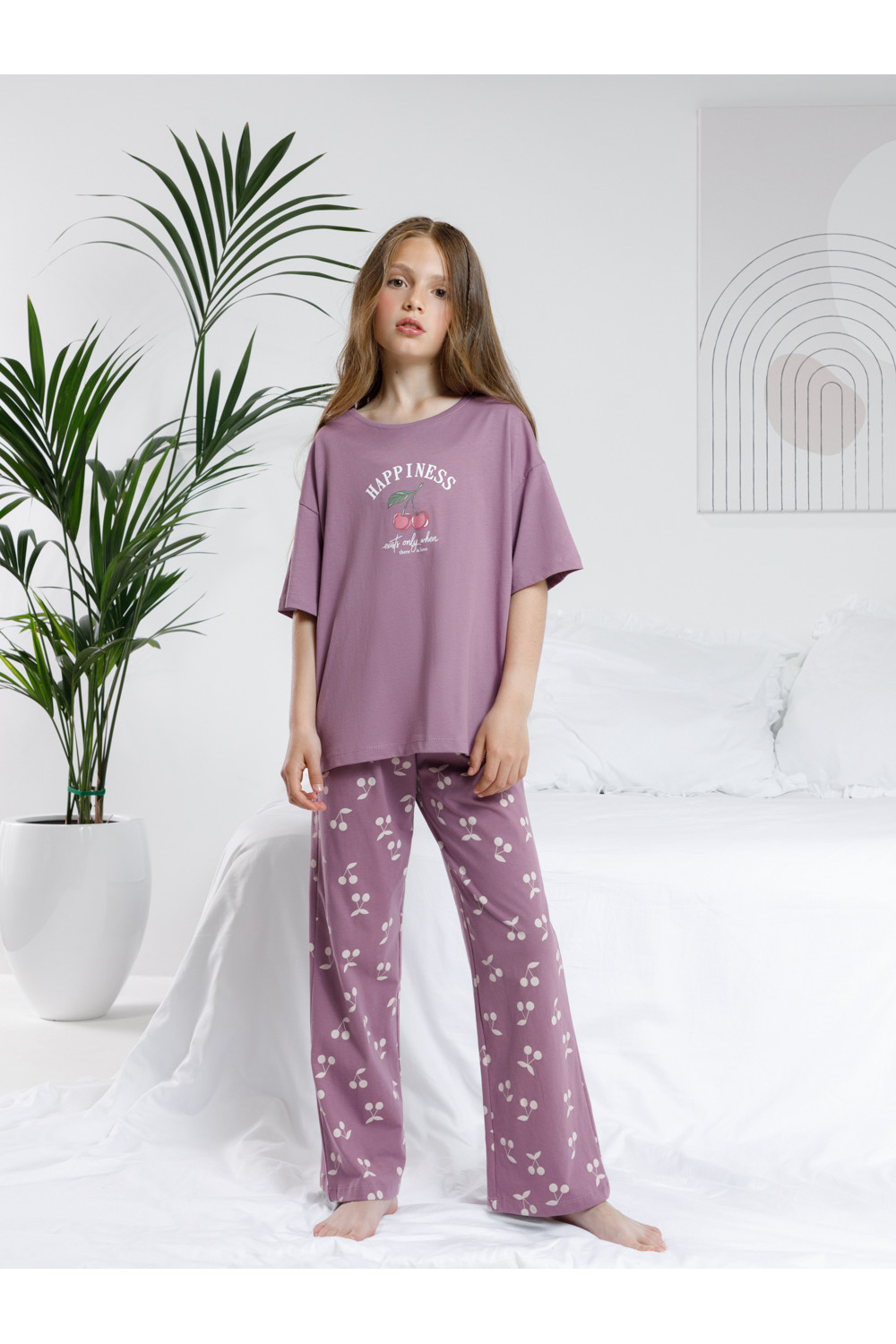 Трикотажная пижама из натурального хлопка для комфортного сна и отдыха. Футболка с короткими спущенными рукавами и прямые брюки с мягкой эластичной резинкой в поясе изготовлены из гладкого трикотажа супрем. Оригинальная набивка и принт выполнены из стойких текстильных гипоаллергенных красителей. Изделие сохраняет цвет и форму после многократных стирок. Все трикотажные полотна производятся в соответствии с нормами швейцарского сертификата ЭкоТекс.
