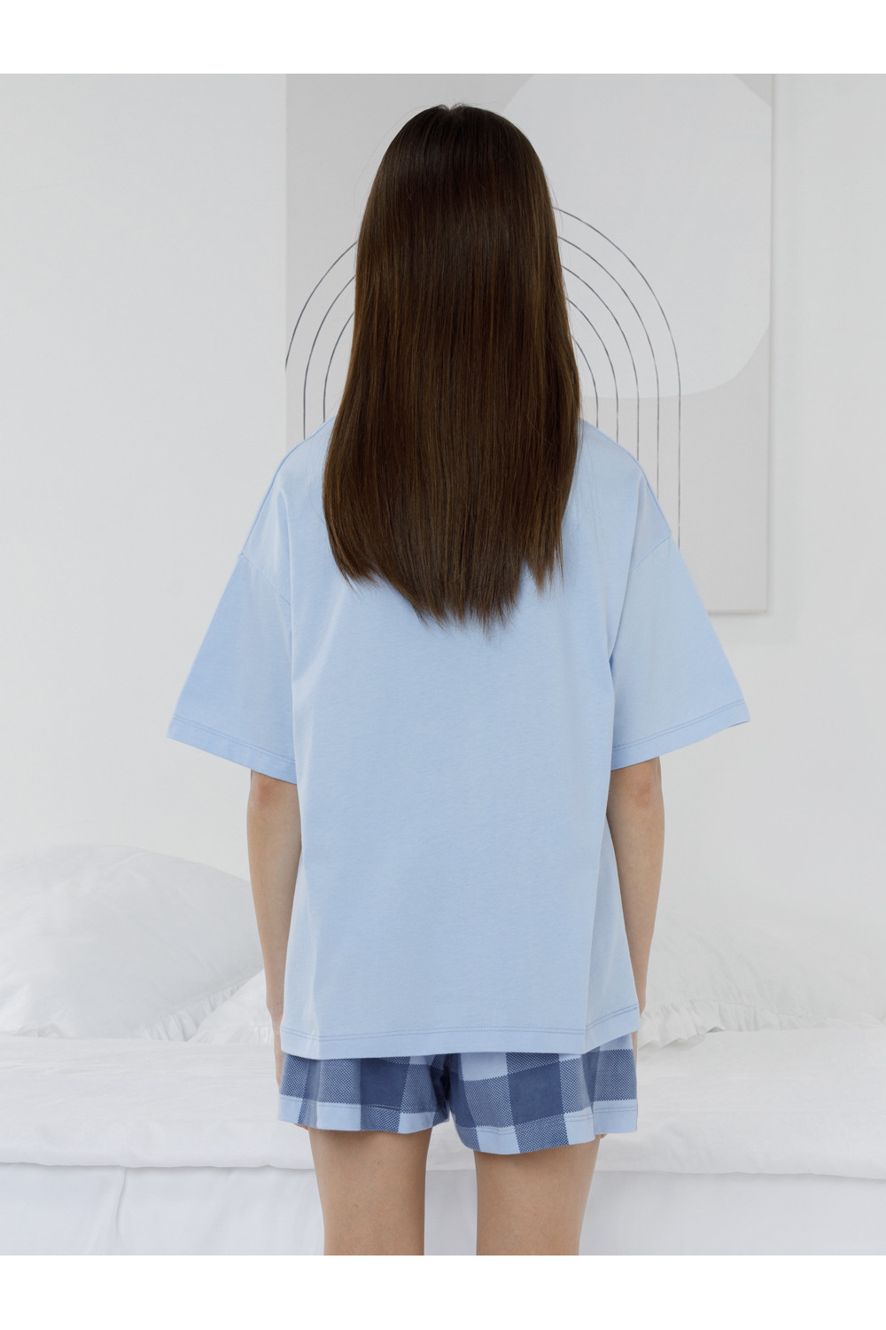 Трикотажная пижама из натурального хлопка для комфортного сна и отдыха. Футболка с короткими спущенными рукавами и шорты с мягкой эластичной резинкой в поясе. Оригинальная набивка и принт выполнены из стойких текстильных гипоаллергенных красителей. Изделие сохраняет цвет и форму после многократных стирок. Все трикотажные полотна производятся в соответствии с нормами швейцарского сертификата ЭкоТекс.