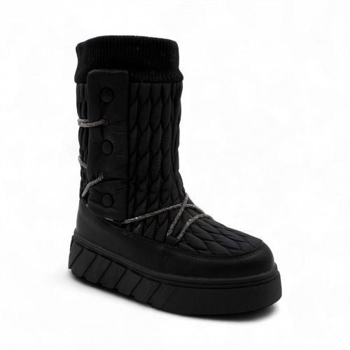 Материал: Верх обуви выполнен из непромокаемого текстиля, что обеспечивает надежную защиту от снега и влаги. Вставки из эко-кожи дополнительно защищают мысок и пятку сапожек от механических повреждений. Уникальная быстросохнущая и водоотталкивающая подкладка из искусственного меха позволяет сохранять сухость и тепло в любых условиях.
