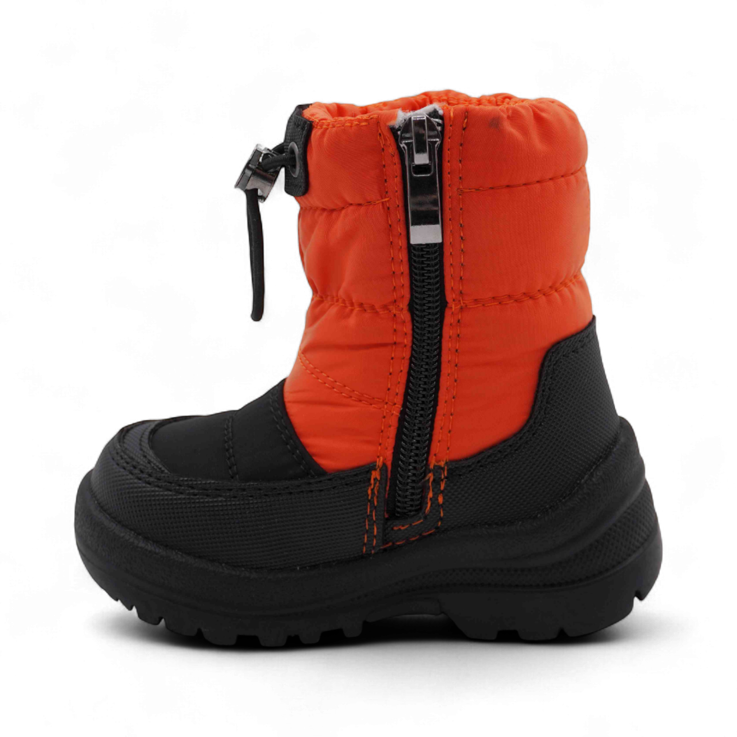 Материал: Верх обуви выполнен из непромокаемого текстиля, что обеспечивает надежную защиту от снега и влаги. Вставки из эко-кожи дополнительно защищают мысок и пятку сапожек от механических повреждений. Уникальная быстросохнущая и водоотталкивающая подкладка из искусственного меха позволяет сохранять сухость и тепло в любых условиях.