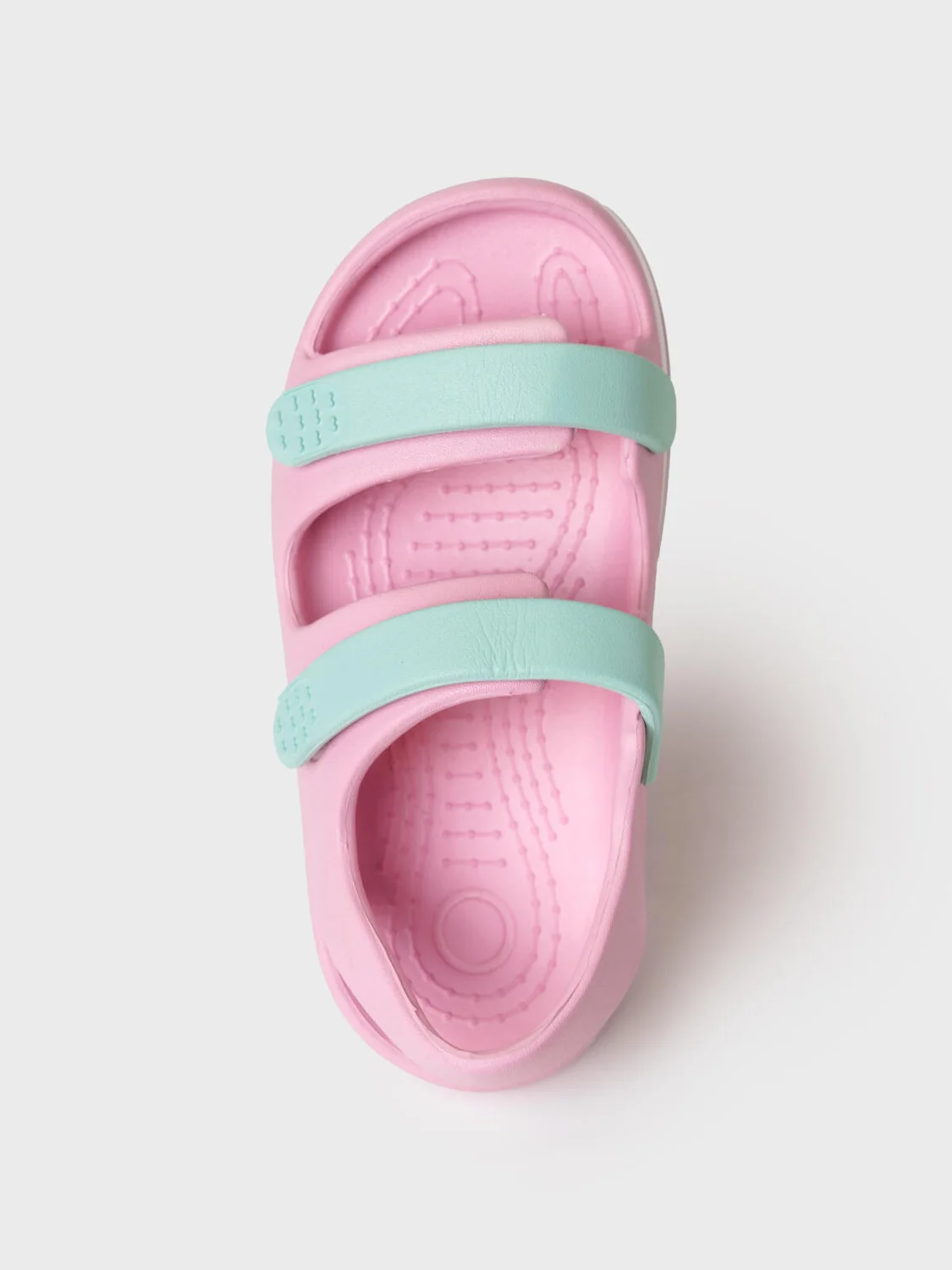 Пляжные сандалии из облегченного ЭВА с регулируемой союзкой двумя ремешками. Фиксация пятки ремешком. Материал хорошо моется. Удобная колодка.