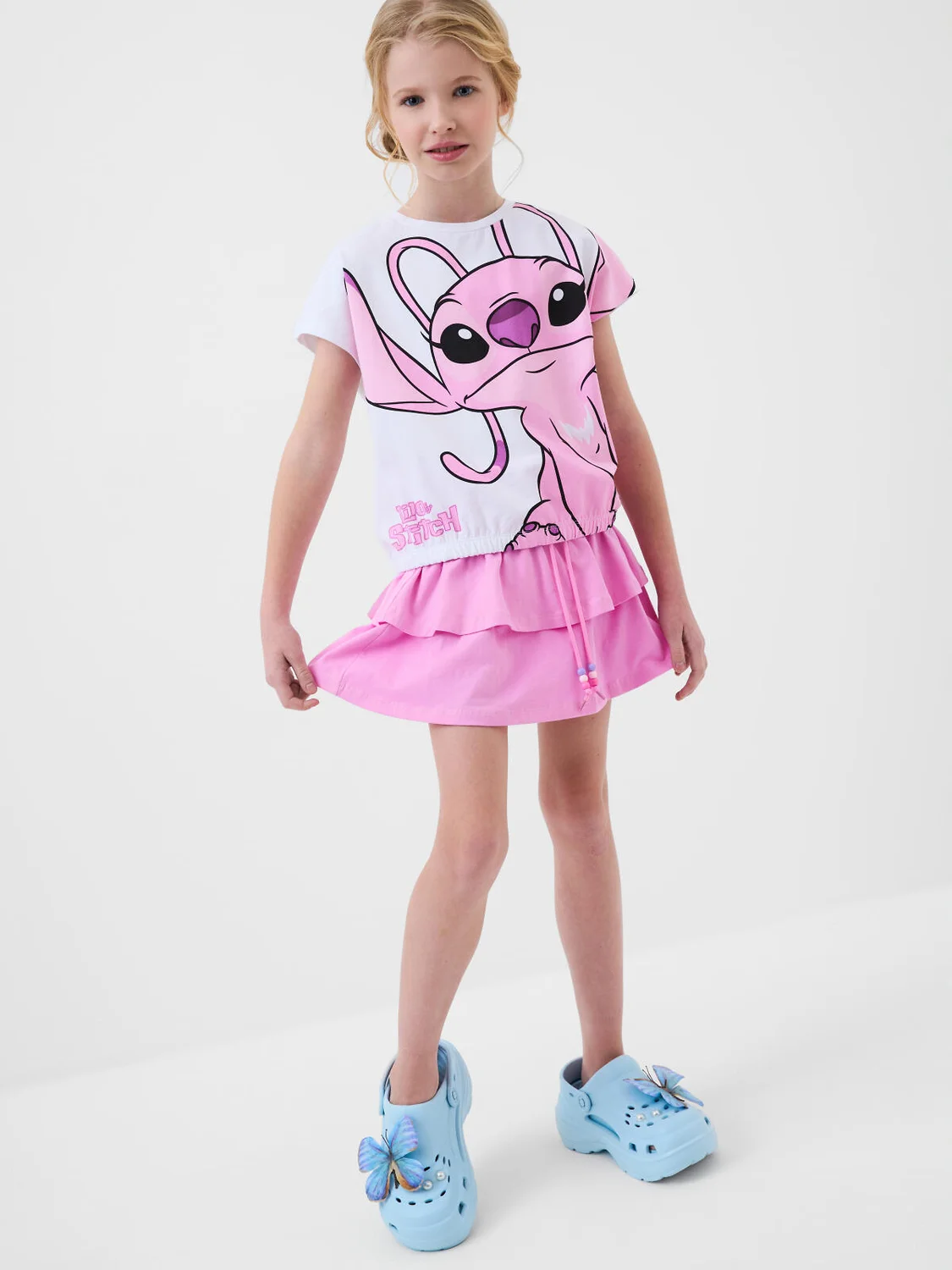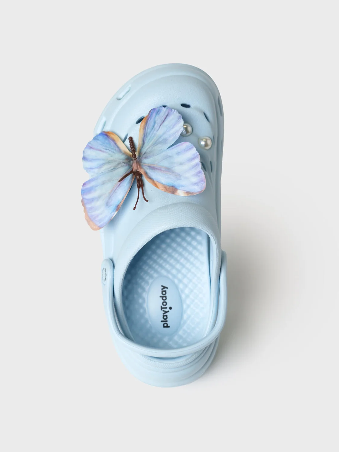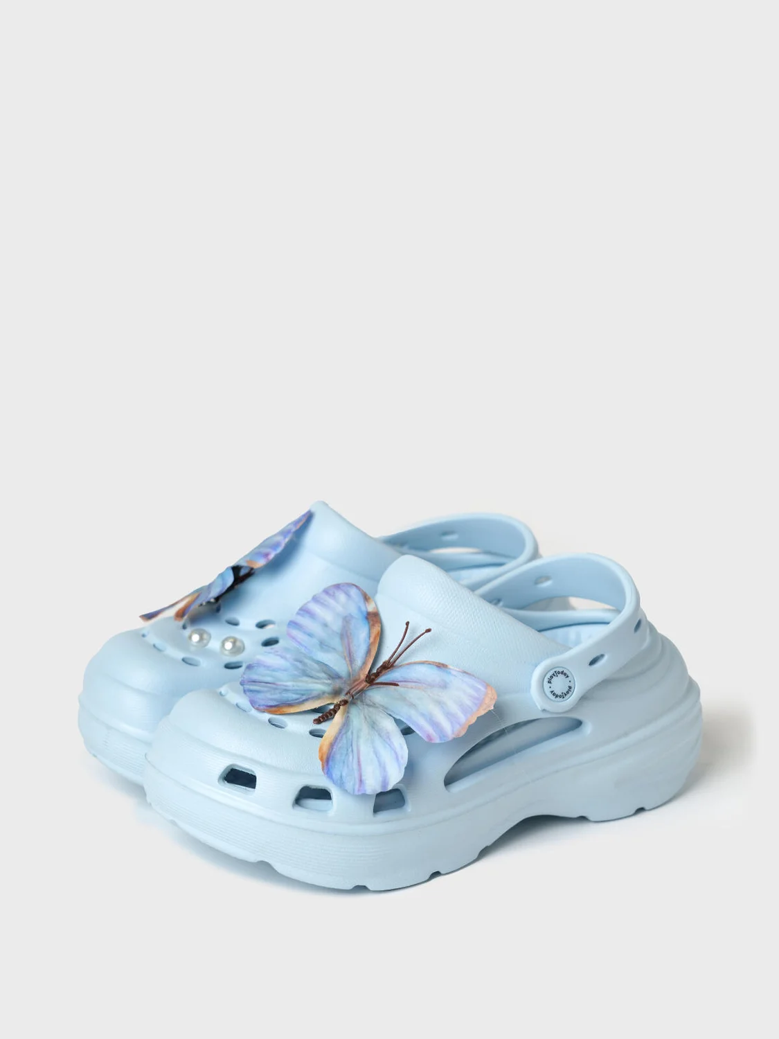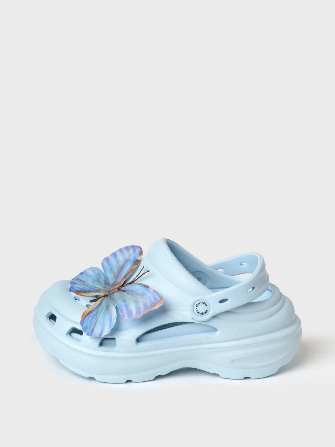 Сабо для девочки-подростка на высокой подошве. Модель выполнена из облегченного и прочного ЭВА. Материал хорошо моется. Форма модели учитывает эргономику стопы. Оригинальность модели придают большие съемные джибицы-бабочки. Модель имеет перекидной ремешок фиксации ноги.