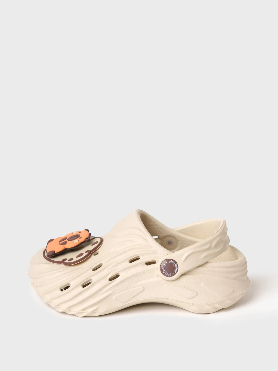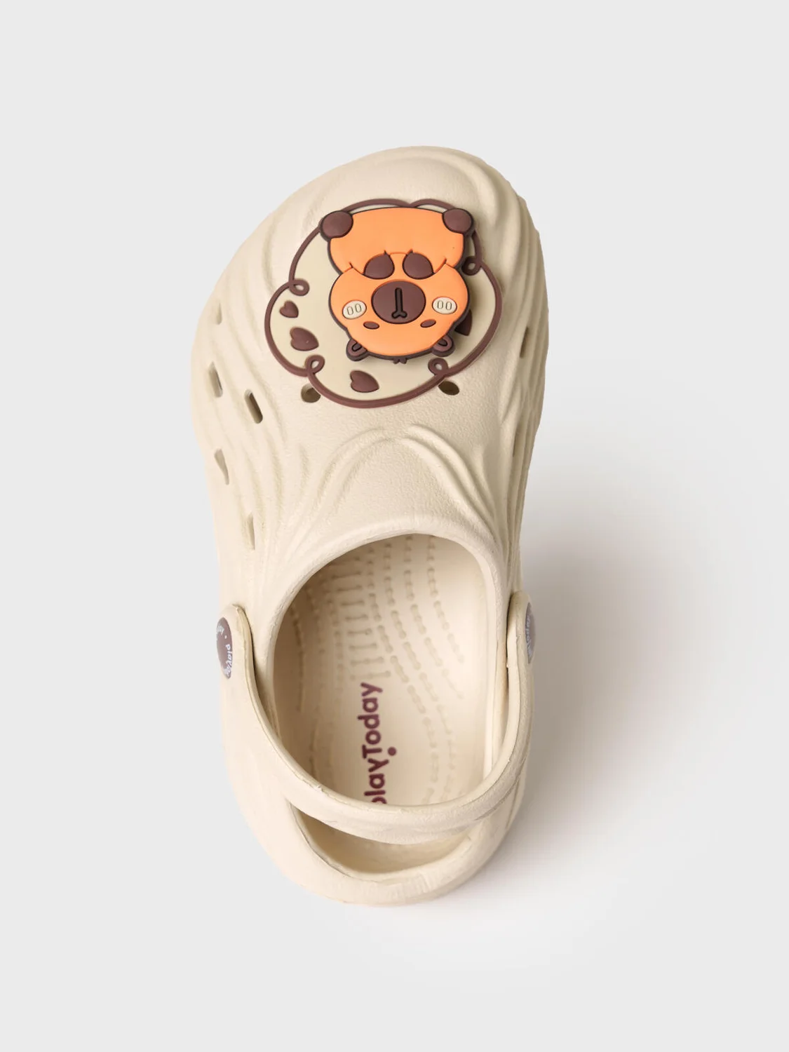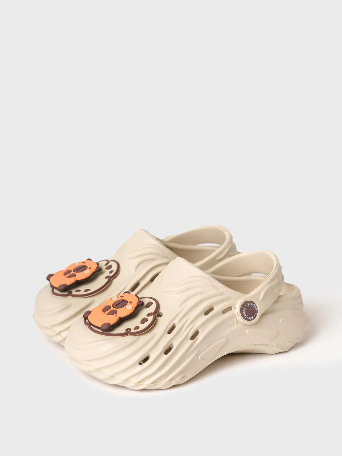 Милые сабо для девочки из облегченного и прочного ЭВА. Материал хорошо моется. Форма модели учитывает эргономику стопы. Модель имеет перекидной ремешок фиксации ноги. Модель декорирована крутящимися патчами со смешным капибара