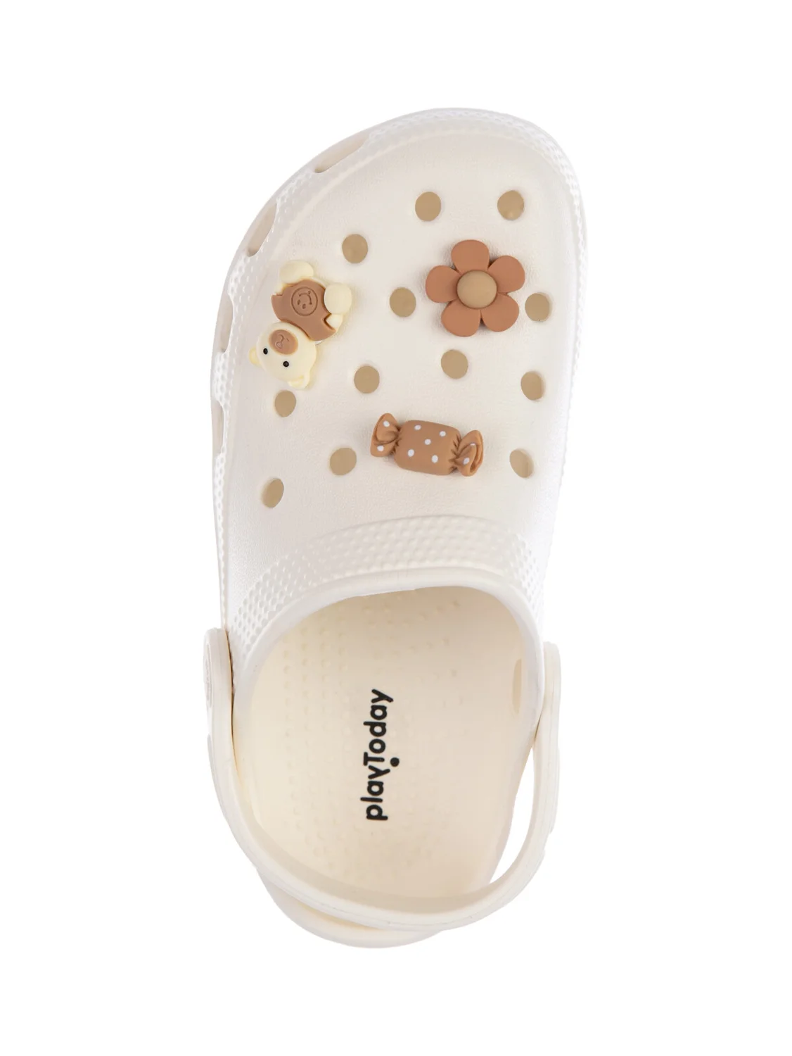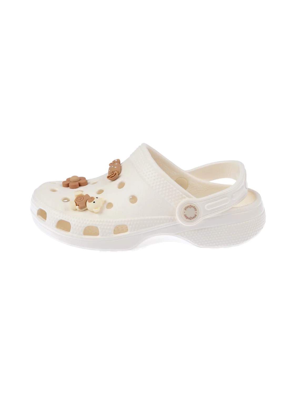 Сабо из облегченного и прочного ЭВА. Материал хорошо моется. Модель украшена милыми джибицами. Форма модели учитывает эргономику стопы. Модель имеет перекидной ремешок для лучшей фиксации обуви на ноге.