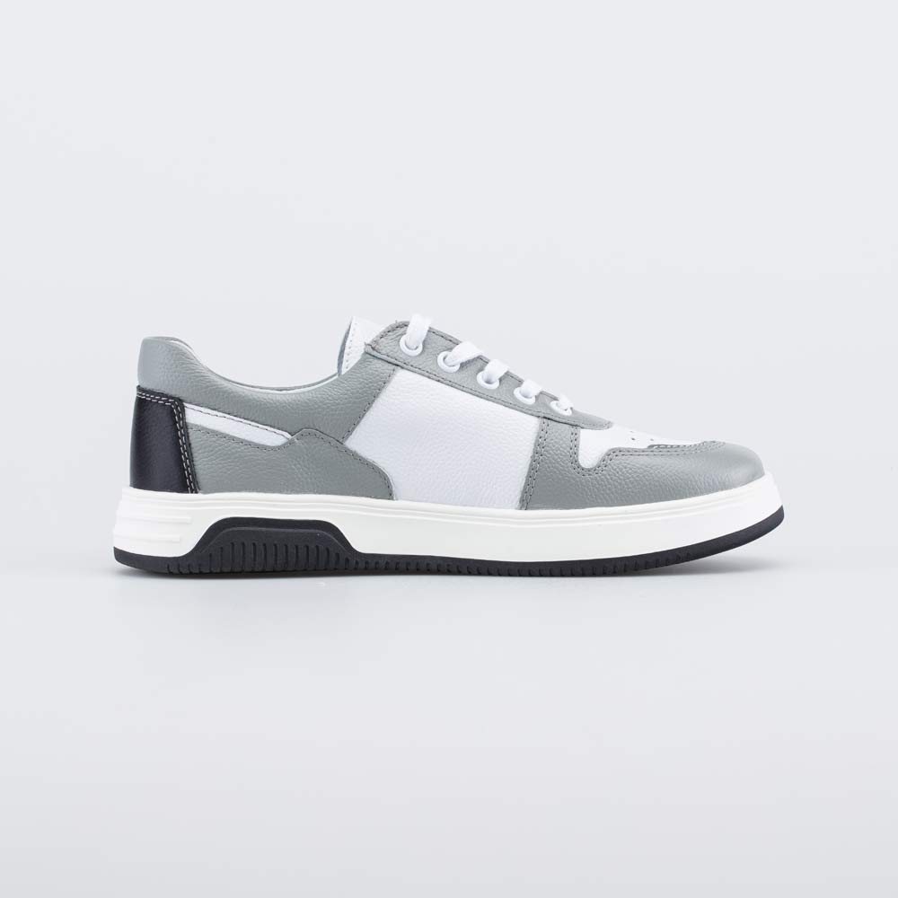 Легкие и удобные полуботинки из натуральной кожи выполнены в сочетании трех цветов (черного, белого и серого) и подойдут для мальчика-подростка.