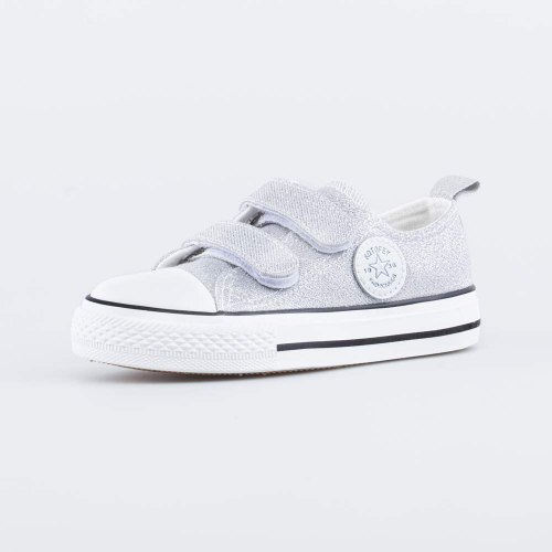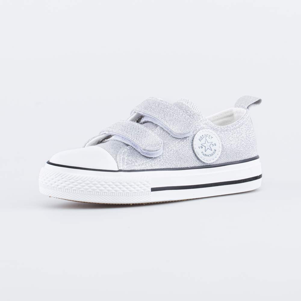 Кеды на липучках серебристого цвета подходят для девочки дошкольного возраста.