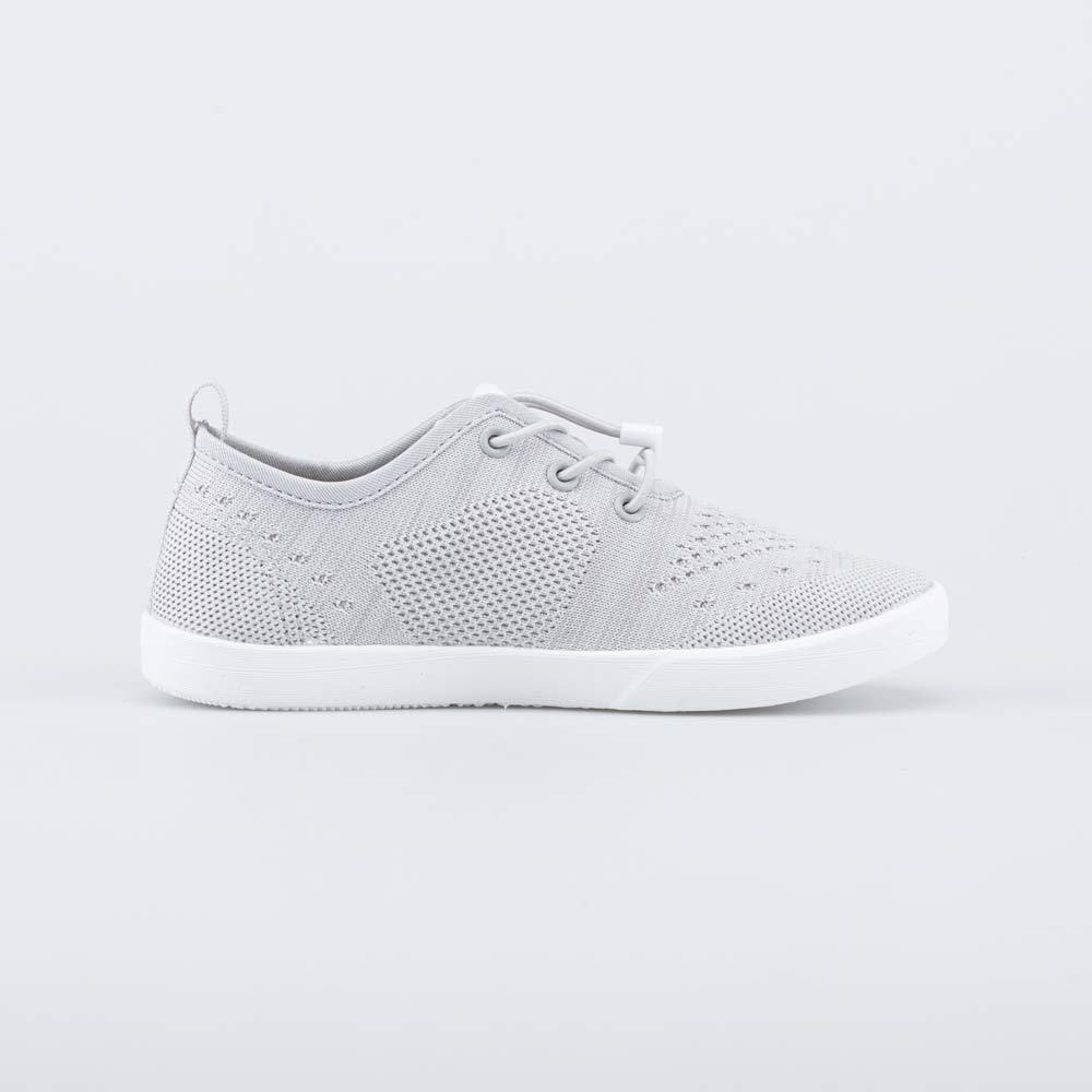Серые кеды из вязаного текстиля подходят для девочки школьного возраста.