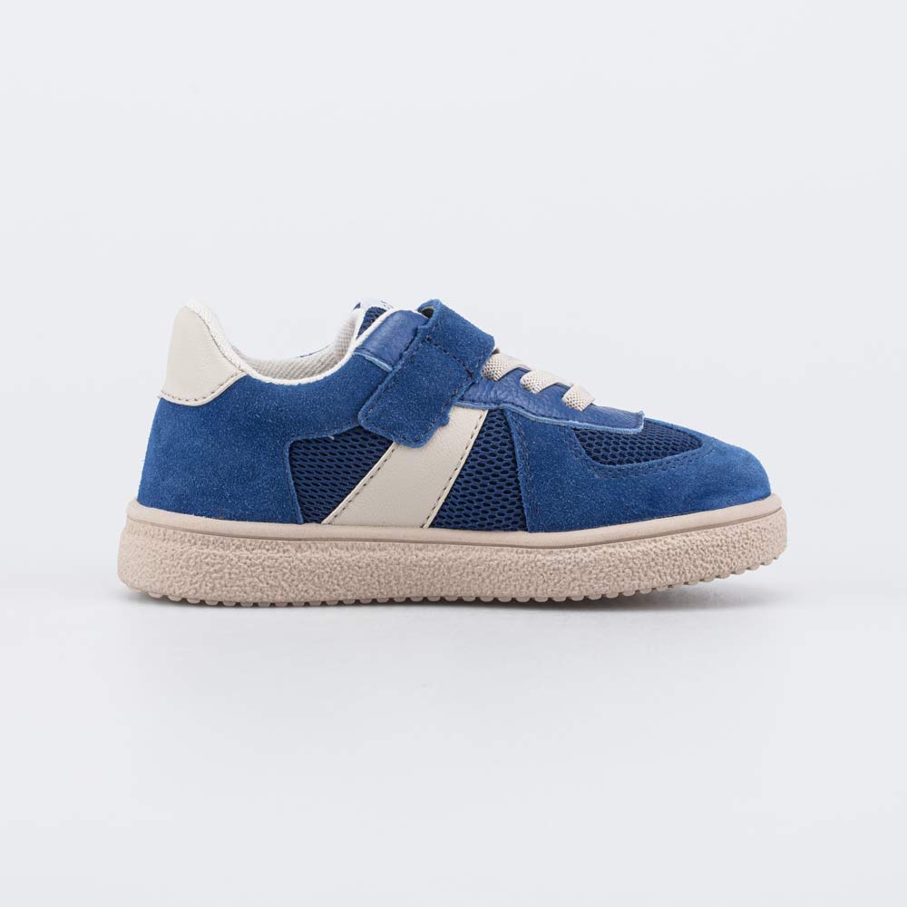 Детские кожаные полуботинки выполнены в синем цвете, который дополнен трендовой бежевой подошвой. Подходят для мальчика дошкольного возраста.