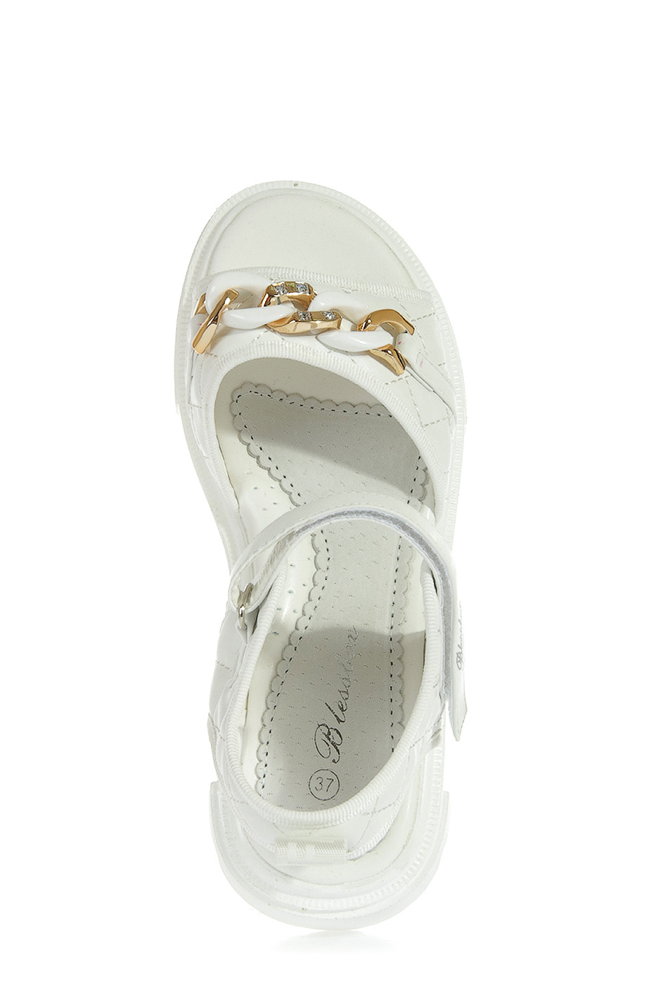 Сандалии детские выполнены из искусственной кожи. Подкладка из искусственной кожи, стелька из натуральной кожи. Детали: декоративные элементы.