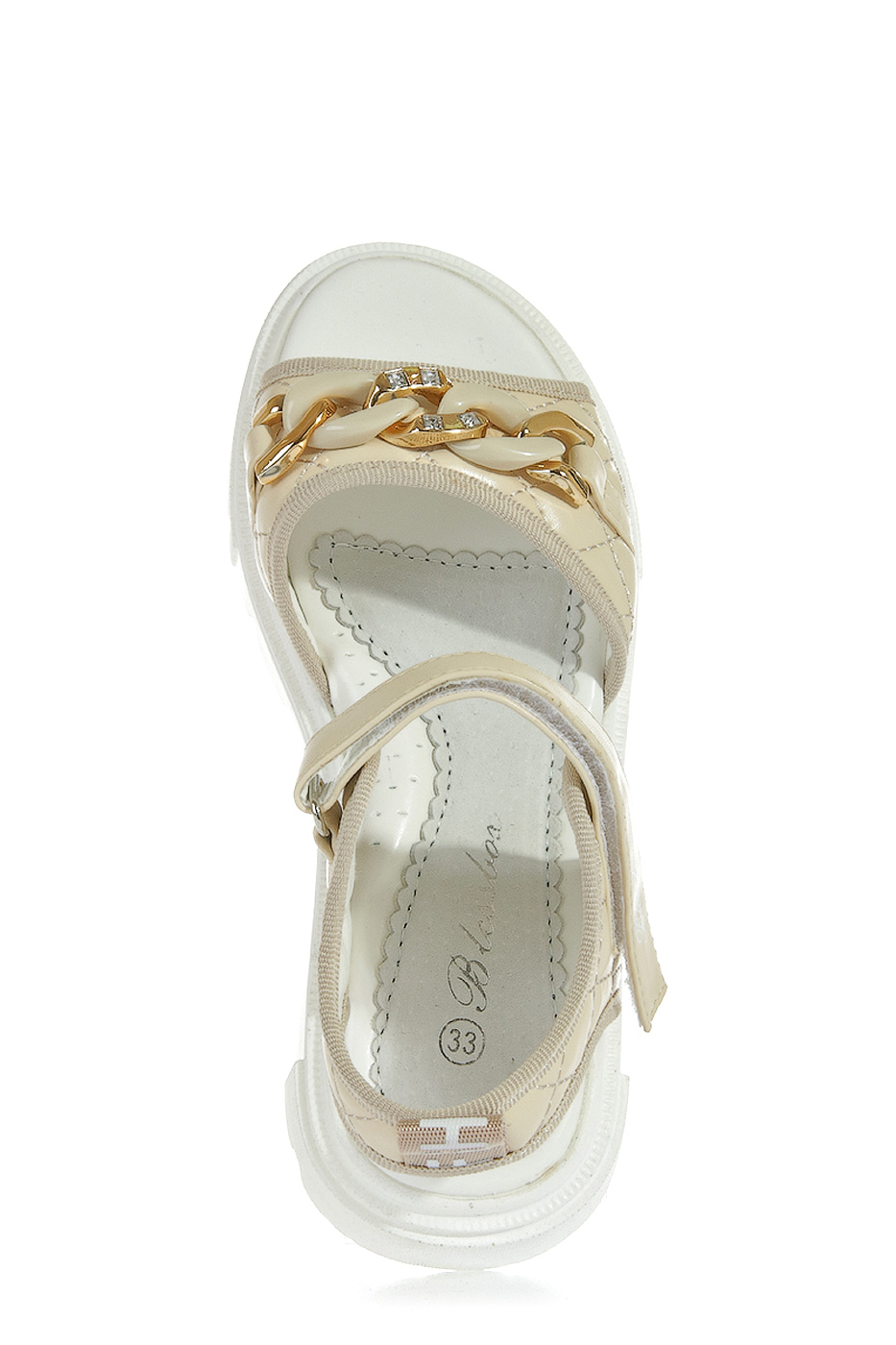 Сандалии детские выполнены из искусственной кожи. Подкладка из искусственной кожи, стелька из натуральной кожи. Детали: декоративные элементы.