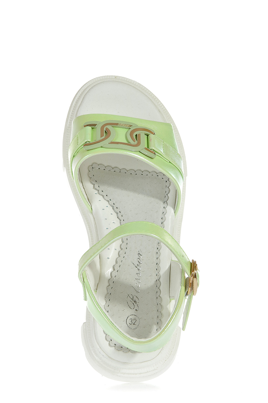 Сандалии детские выполнены из искусственной кожи. Подкладка из искусственной кожи, стелька с супинатором из натуральной кожи. Детали: декоративные элементы.
