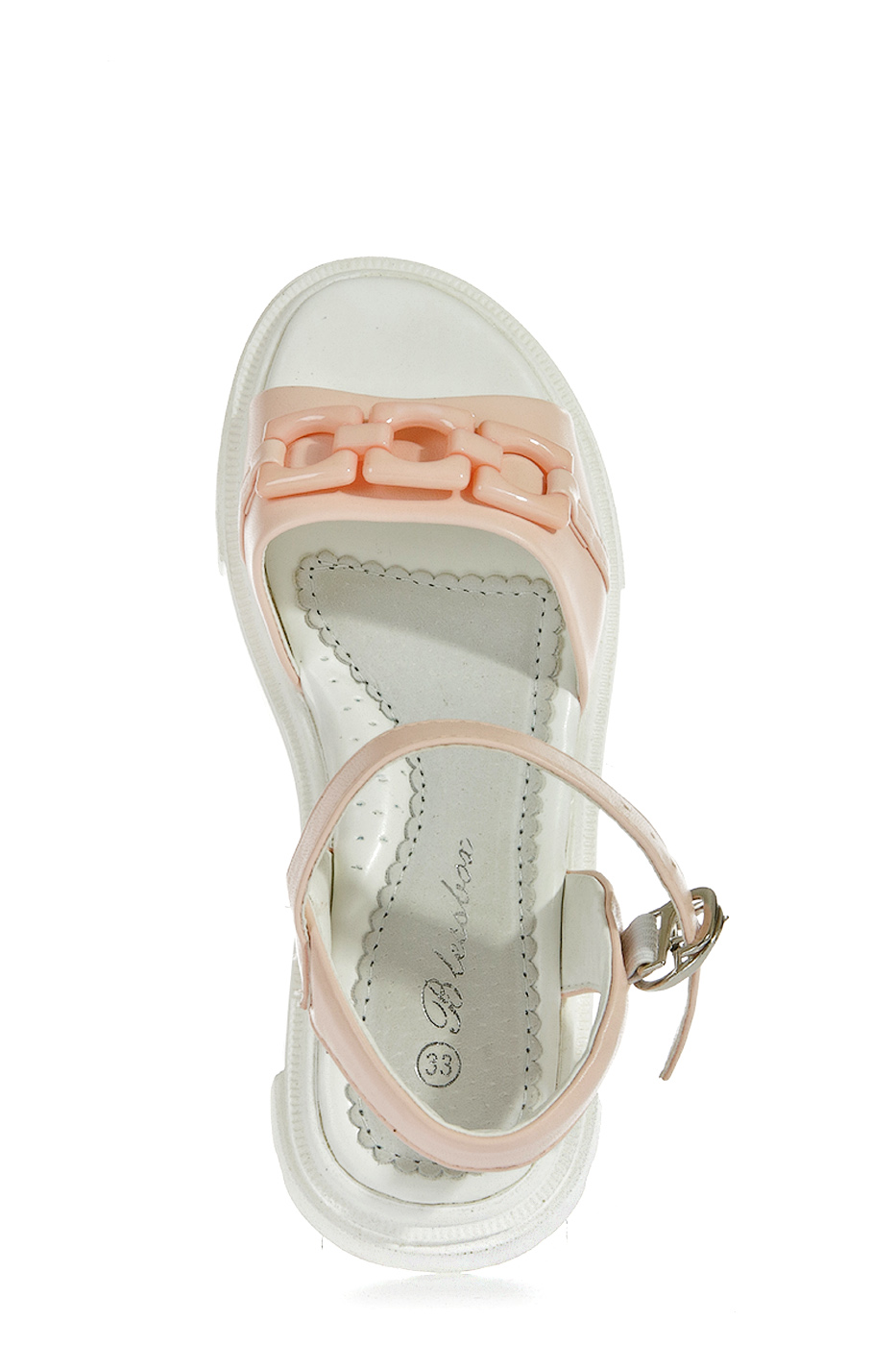 Сандалии детские выполнены из искусственной кожи. Подкладка из искусственной кожи, стелька с супинатором из натуральной кожи. Детали: декоративные элементы.